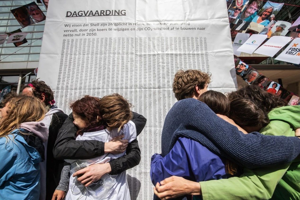 2021年5月,荷兰海牙法院命令壳牌公司比原计划更快、更狠地减少碳排放量,环保人士在庆祝