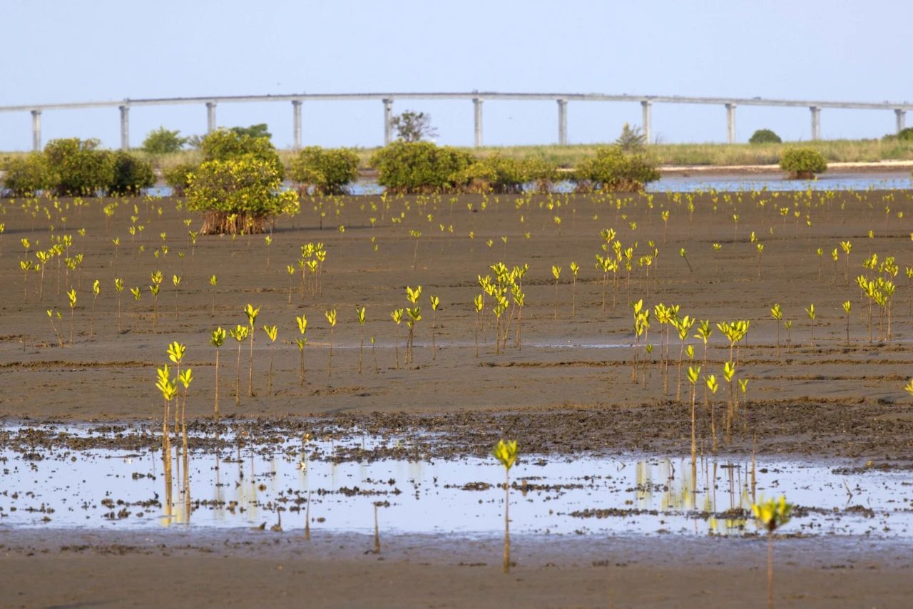 壳牌资助了塞内加尔的一个红树林恢复项目,萨卢姆河汇入大西洋泥滩上的种植线