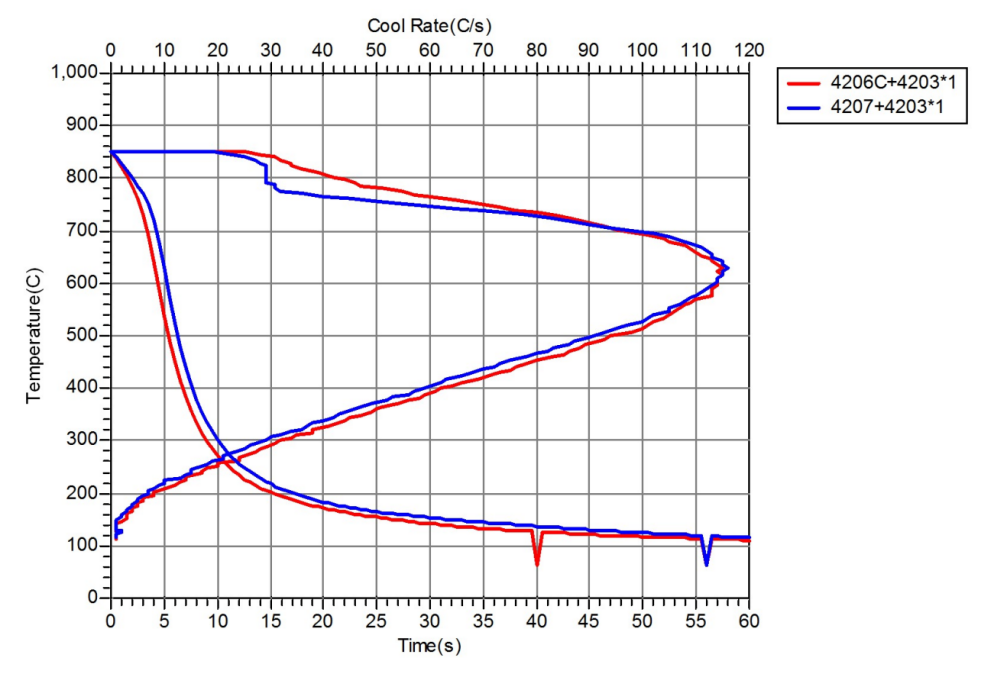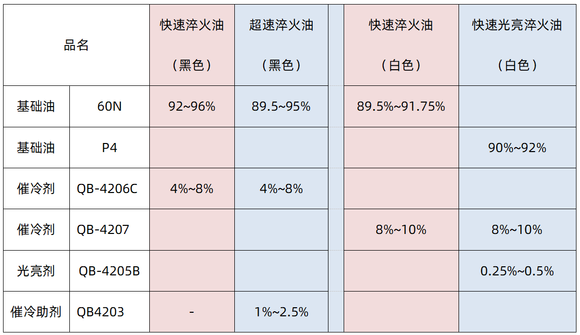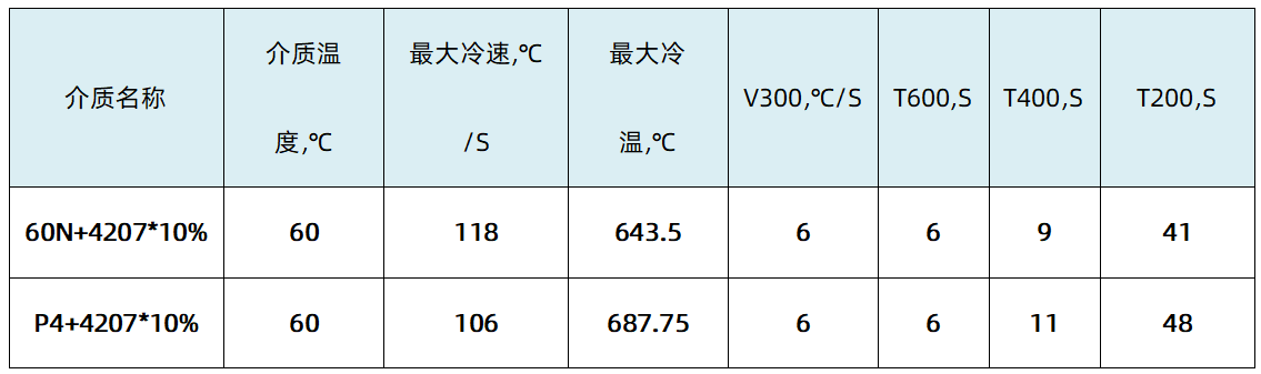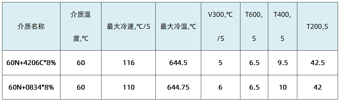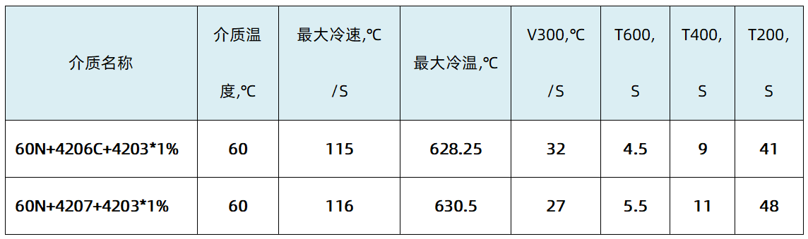 · 4203(催冷助剂)分别与60N+4206C、60N+4207配伍,以达到超速淬火油所需的冷却性能。