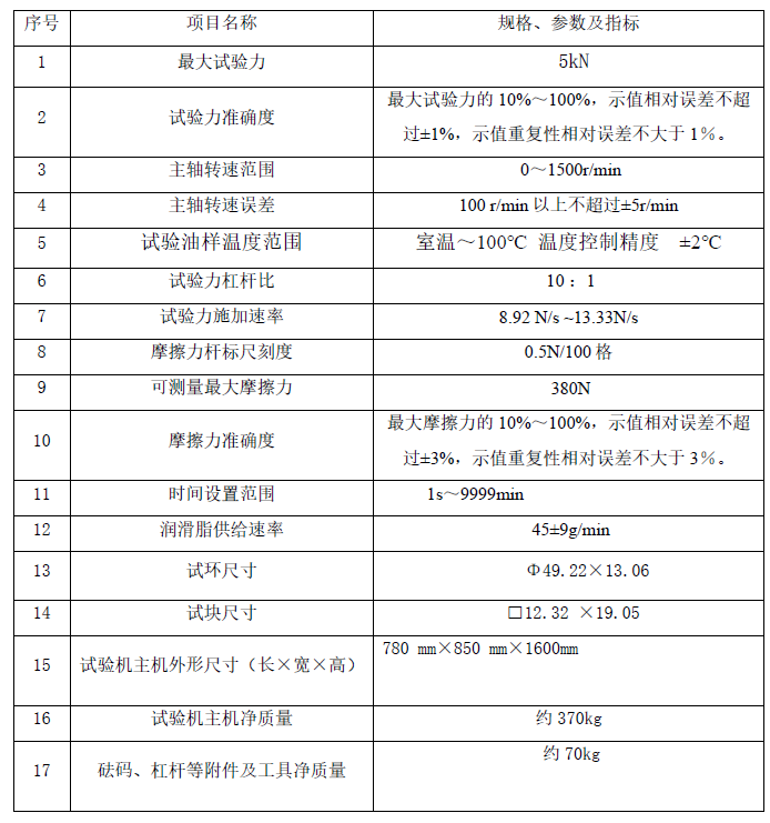 介绍:该机主要用来做各种润滑油和脂在滑动摩擦状态下的承载能力和摩擦特性的试验;也可以用来做某些金属材料和非金属材料(尼龙、塑料等)在滑动摩擦状态下的耐磨性能的试验;同时也可以测定材料的摩擦力,并推算出材料的摩擦系数。该机主要适应于石油化工、钢铁冶金、交通运输和高等院校等行业领域。