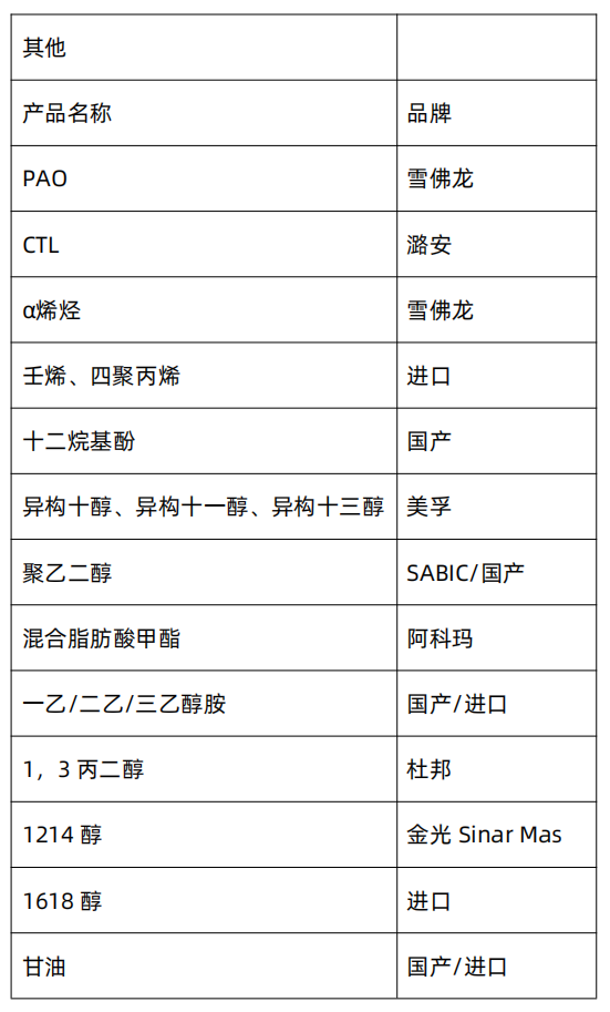 作为中国润滑与金属加工行业优秀供应商之一,与雪佛龙、花王、潞安、Dorf Ketal、赢创、巴斯夫、Oleon、卡博特、Sabic国际知名公司均有深入合作,共同为润滑行业客户提供优质原材料及服务。