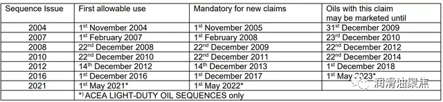 ACEA标准迭代与生效日期