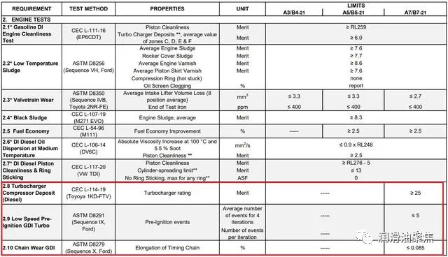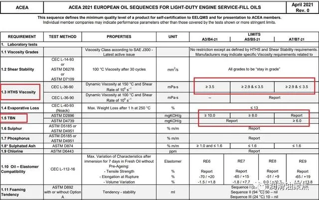 ACEA A7/B7 新增测试标准