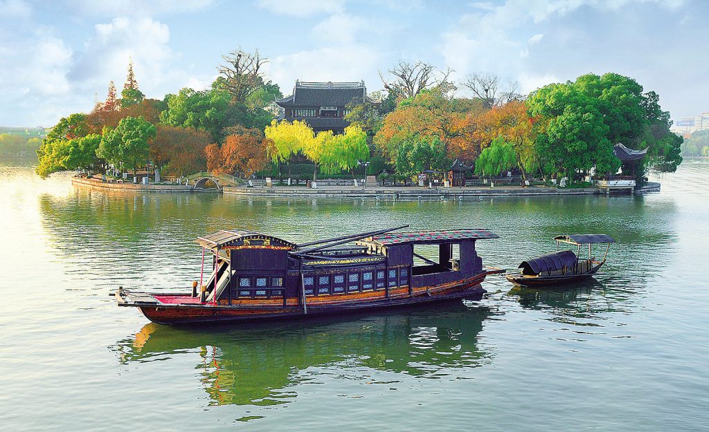 南湖是浙江三大名湖,素来以“湖中有岛,岛中有湖”的独特景观和“轻烟拂渚,微风欲来”的烟雨景致成为江南著名的旅游胜地。1921年7月,中国共产党第一次全国代表大会在南湖上的一艘画舫中完成了最后议程,庄严宣告中国共产党成立。南湖由此成为共和国党旗升起的地方,成为中国共产党诞生地。