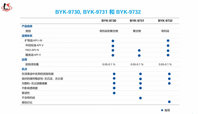 BYK-9730,用于常规基础油的多功能含硅和聚合物类消泡剂; BYK-9731,用于特定体系的非硅聚合物类消…
