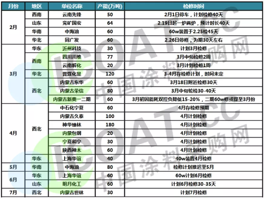 青海盐湖33万吨/年CTO和配套甲醇装置3月16日停车到4月份;