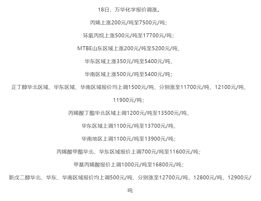 化工市场也在节后迎来了“开门红”,报价直线上涨