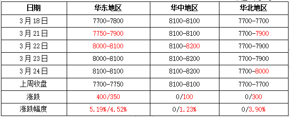 二类基础油方面:本周国际原油涨势重拾,原油价格接连上行,涨幅较大。国内基础油市场窄幅波动为主,市场涨跌互现。据卓创资讯数据统计,截至3月24日,32#工业白油主流价格在7400-8200元/吨,150N主流价格区间为8550-8650元/吨,工业白油32#均价为7994.17元/吨,环比上周涨0.72%。68#工业白油成交价格为7900-8700元/吨,均价为8278.44元/吨,环比上周涨0.2%。进口二类基础油本周企稳运行,市场观望气氛浓厚,交投刚需为主,目前台塑150N价格在8900-9100元/吨,500N价格9100-9300元/吨。