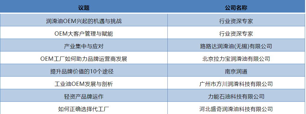 润滑油OEM品牌峰会及对接交流议程(拟)